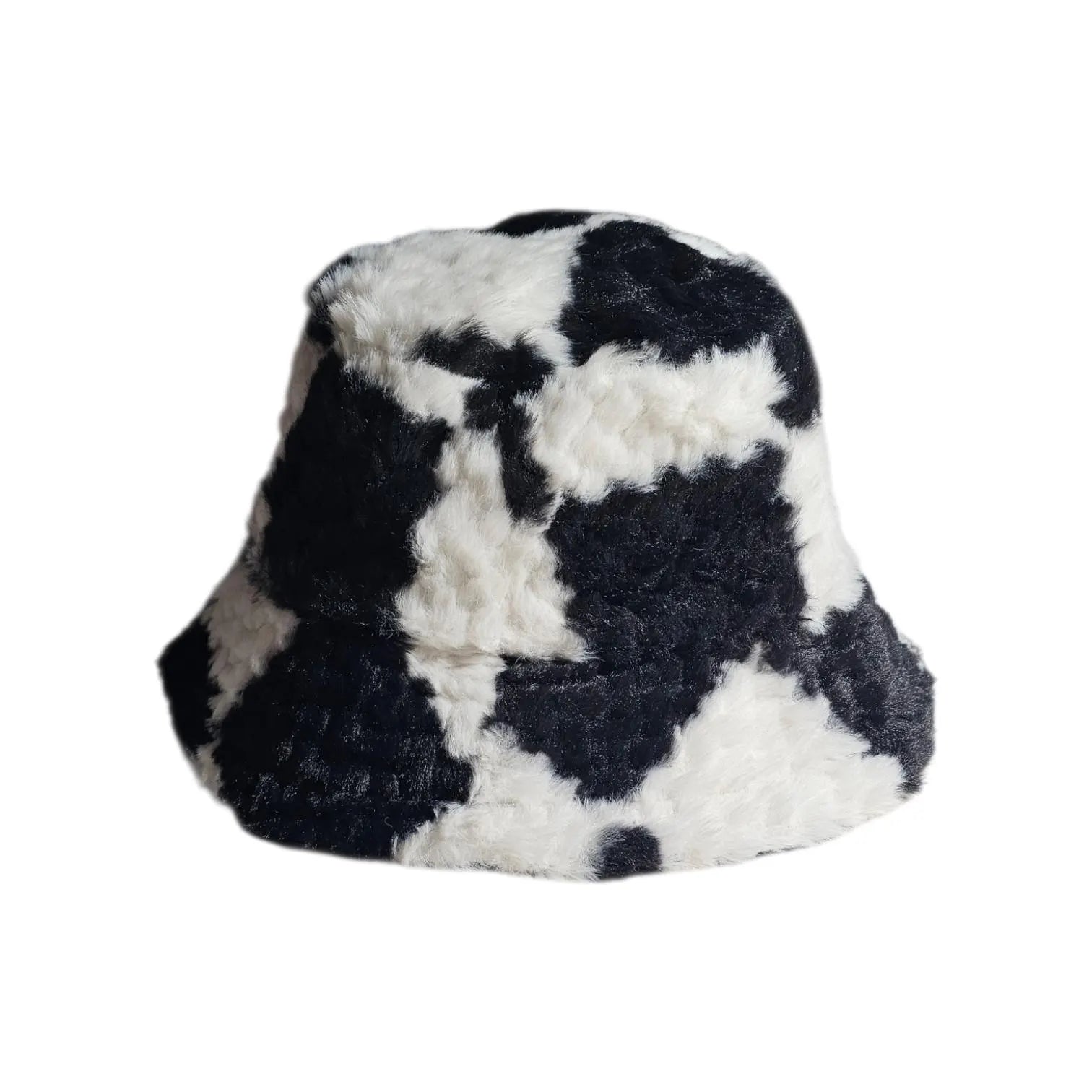 Checkered Faux Fur Bucket Hat