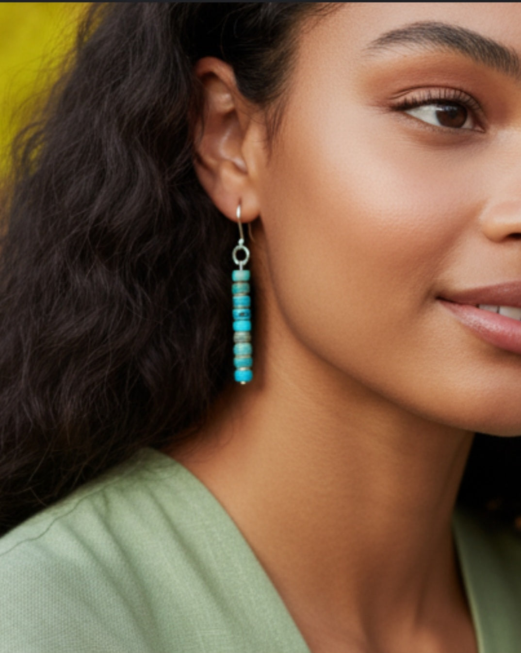 Bring timeless elegance and vibrant energy to your jewelry collection with these stunning Turquoise Dangle Earrings. Crafted from genuine Turquoise Sea Sediment Jasper and set in sterling silver, these earrings capture the essence of wisdom and serenity with a bold boho flair.